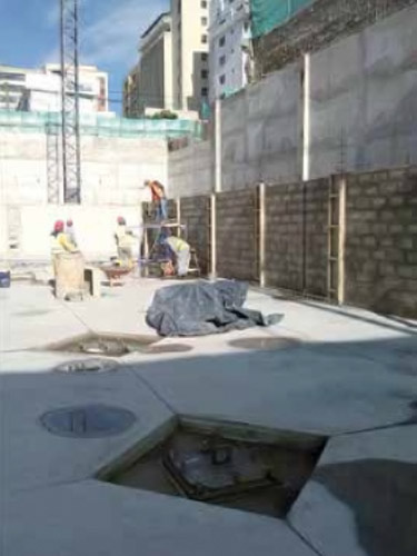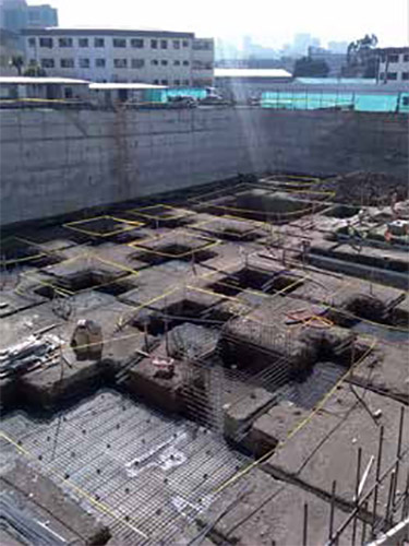 ETAPA 1. Comprende un área 12.785 metros cuadrados de construcción, correspondiente a la cimentación, 3 plantas de subsuelo, Planta Baja, Pisos 2, 3 y 4.
